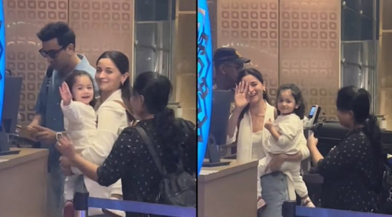 ভিডিওতে দেখা যায়, তার নাম ধরে যখন ডাকা হয়েছে সে সময় একগাল হেসে সকলকে ‘হাই’ বলল সে। এখানেই থামেনি সকলের ডাক শুনে উড়ন্ত চুম্বন ছুড়তেও দেখা গেল তাকে। রাহার এমন কাণ্ড দেখে হাসি থামাতে পারেননি রণবীর-আলিয়া। তারাও হাত নেড়ে বিমানবন্দরে প্রবেশ করেন।