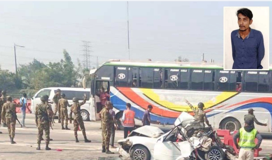 ঢাকা-মাওয়া এক্সপ্রেসওয়েতে ধলেশ্বরী টোল প্লাজায় যাত্রীবাহী বাসের ধাক্কায় একই পরিবারের চার জনসহ মোট ছয় জন নিহত হওয়ার ঘটনায় ঘাতক বাসচালক মোহাম্মদ নুরুদ্দিনকে গ্রেপ্তার করেছে র্যাব।