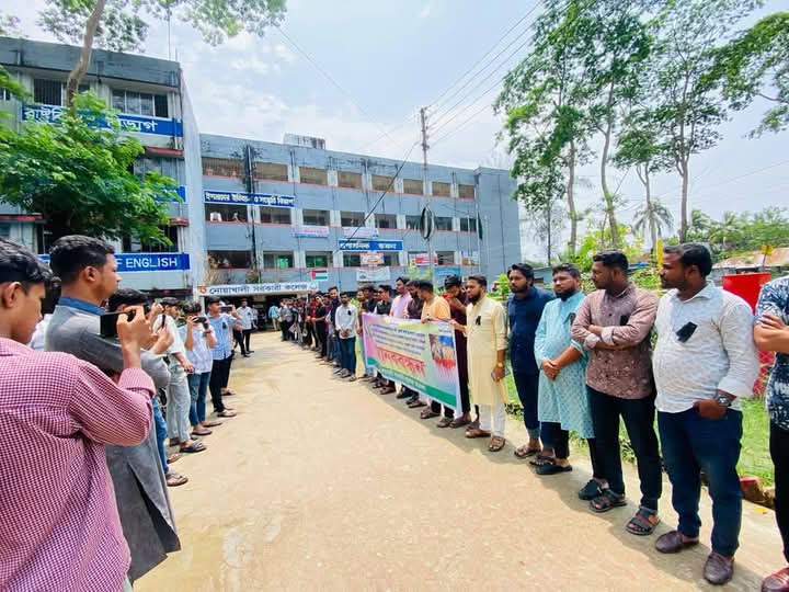 বৈষম্যবিরোধীদের নেতৃত্বে ছাত্রদল কর্মী পারভেজ কে হত্যা করা হয়েছে: মানববন্ধনে নোসক ছাত্রদল নেতারা