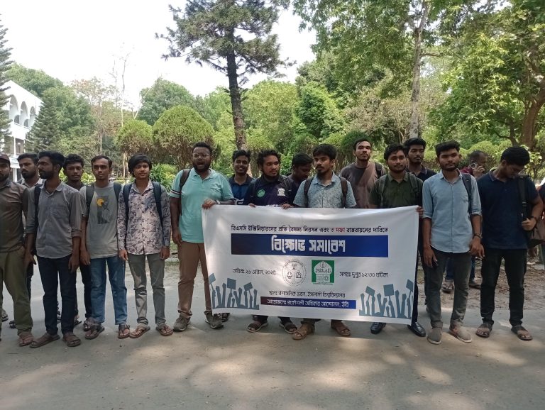 ইবি প্রতিনিধি: বিএসসি ইঞ্জিনিয়ারদের প্রতি বৈষম্য নিরসন এবং তিন দফা দাবি বাস্তবায়নের দাবিতে ইসলামী বিশ্ববিদ্যালয়ে (ইবি) বিক্ষোভ সমাবেশ করেছে ‘প্রকৌশলী অধিকার আন্দোলন’। শনিবার (২৬ এপ্রিল) দুপুর দেড়টায় বিশ্ববিদ্যালয়ের প্রশাসন ভবনের সামনে এই কর্মসূচি অনুষ্ঠিত হয়।