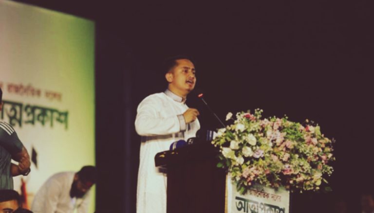 লং মার্চ শেষে পঞ্চগড় শহরের চৌরঙ্গী মোড়ে জুলাই স্মৃতিস্তম্ভে সমাপনী বক্তব্য দেবেন সারজিস আলম।