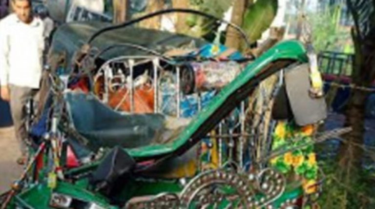 * অবস্থা: দুর্ঘটনাকবলিত অটোরিকশার সামনের অংশ সম্পূর্ণভাবে ক্ষতিগ্রস্ত হয়েছে।