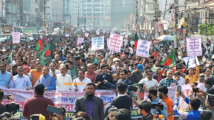 এর আগে গত রোববার ঢাকায় ভারতীয় হাইকমিশনে স্মারকলিপি দেয়ার পরদিন, যৌথ সংবাদ সম্মেলনে লংমার্চ কর্মসূচি ঘোষণা করে বিএনপির তিন সংগঠন।