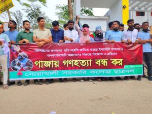 ফিলিস্তিনে গণহত্যার প্রতিবাদে নোসক ছাত্রদলের মানববন্ধন